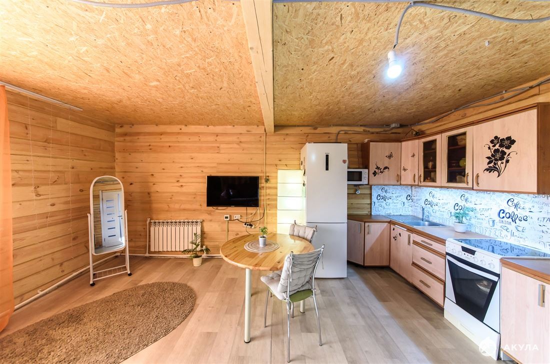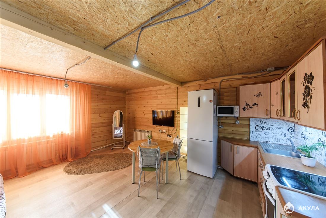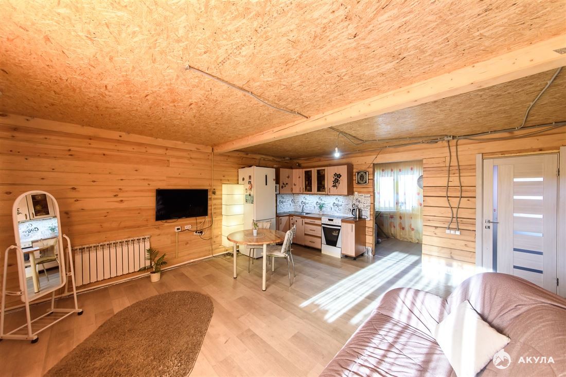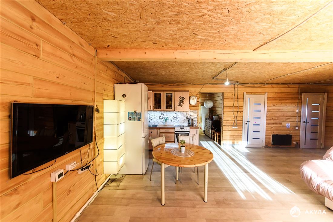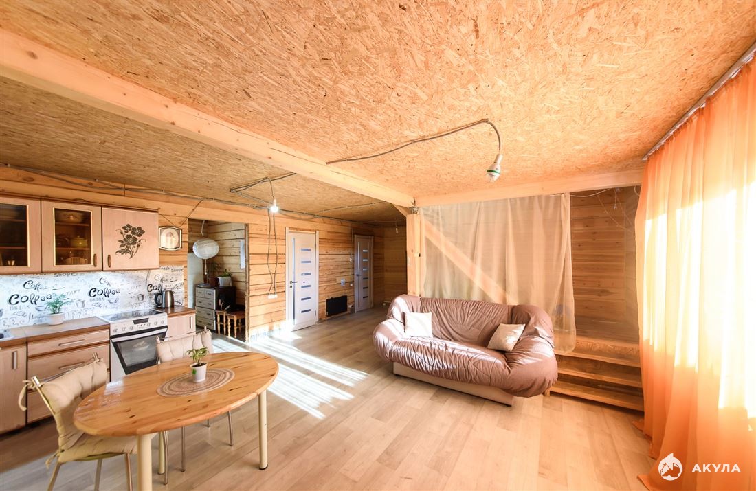 Первый этаж: просторная прихожая, кухня-гостиная, спальная комната, совмещенный санузел, котельная. Второй этаж- свободная планировка. Со второго этажа выход на балкон.