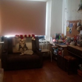 Комната 12.8м² на 3 этаже коридорного типа. Туалет, умывальня по разным концам этажа. Кухня общая на этаже, душевая на первом этаже, столпотворений не бывает. Всё в чистом виде. У входа в здание всегда присутствует вахтёрша. В комнате сделан ремонт: новые обои, окно с...