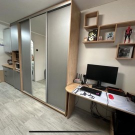 Продам студию(доля), туалет и душевая кабина на две квартиры. Косметический ремонт, натяжной потолок, вытяжка, поменяна вся электрика в квартире. Рядом берёзовая роща, сады, школа, техникум. Реальному покупателю торг.