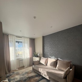 Светлая и теплая квартира, с хорошим ремонтом. 12 этаж дает отличный вид из окна. Потолок натяжной, пол- плотный линолеум. В санузле- кафель, сделана душевая кабина, навесной шкафчик, раковина с тумбой. В комнате остается: 2 встроенных шкафа- купе, 2 тумбы, журнальный столик. В...